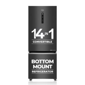 Haier 325 L 3 Star Frost Free Bottom Mount Double Door Refrigerator|Convertible 14-in-1|Jhukna Mat-Bottom Freezer|Digital Display Panel|Triple Inverter|Twist Ice Maker (HEB-333GB-P, Graphite Black)