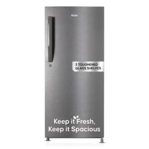 Haier 190L 4 Star Direct Cool Single Door Refrigerator | 3 Toughened Glass Shelves | Fast Ice Making in Just 60 minutes | Large Veg Box| Easy Clean Back (HED-204DS-P, Dazzle Steel)