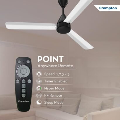 - Point Anywhere Remote: Energion Hyperjet comes with a point anywhere RF remote, no need to point remote at the fan for controlling it. Remote comes equipped with hyper mode, timer, or sleep mode at the click of a button.
