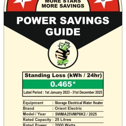 • BEE CERTIFIED 5-STAR EFFICIENCY – Engineered to deliver hot water faster while consuming less energy. BEE Label Period-1st Jan, 2023 to 31st Dec, 2025.