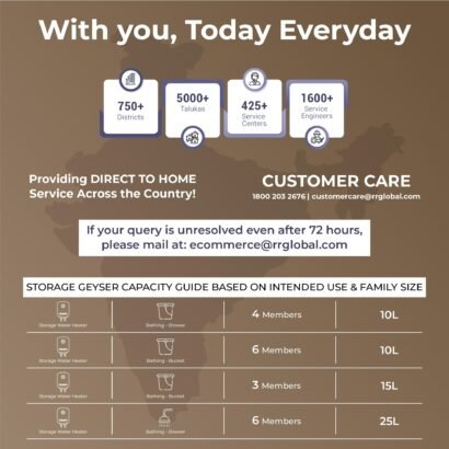Be the first to review “RR Signature Zello 10L Star Rated Storage Water Heater for Home | Glass Line Tank Geyser | 8 Bar, Suitable for High Rise |Thermal Cutout |Safety Valve 2 Yr Warranty on Product & 6 Yr on Tank by RR”