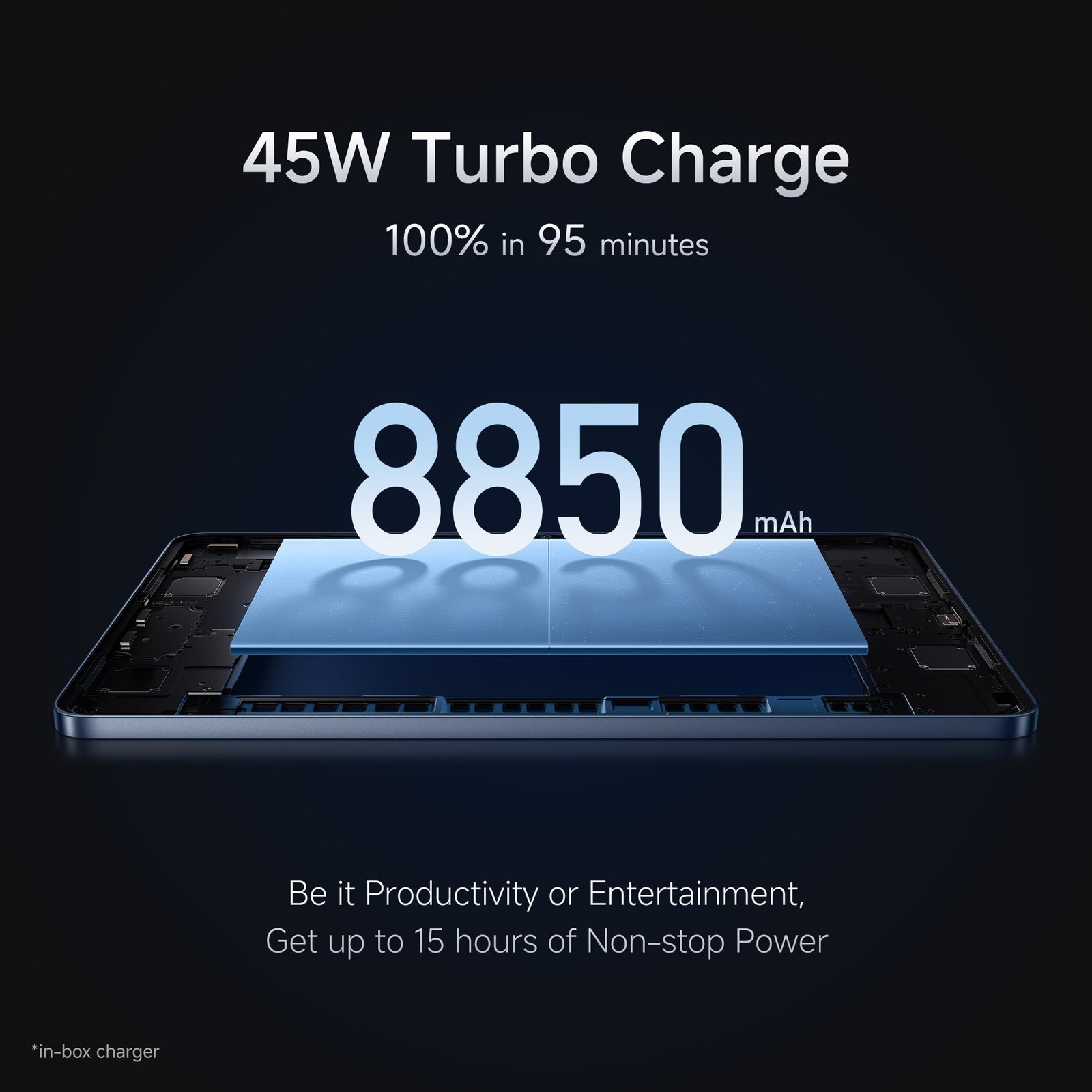 - Stay productive for up to 16 hours – Stay maximised all day with the robust 8850 mAh battery, giving you the power to work and create without letting you down. Get back to business faster with 45W Turbo Charging, ensuring you’re always ready to perform